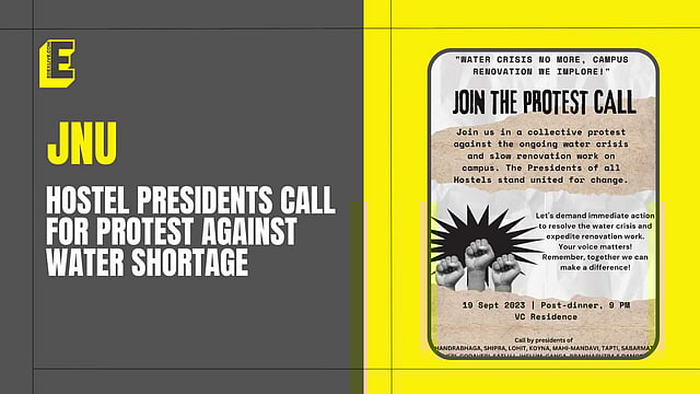 To demand action from the university’s administration to ensure regular water supply, the Presidents of JNU’s hostels, along with the JNU Students’ Union (JNUSU), have called for a protest at 9 pm tonight, September 19 in front of the JNU VC House, where the vice-chancellor resides.