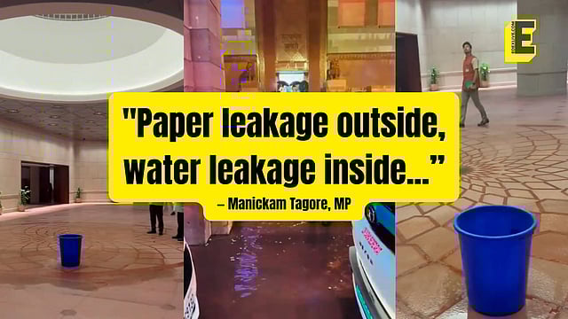 "Paper leakage outside, water leakage inside", tweeted Congress MP from Virudhnagar, Tamil Nadu, Manickam Tagore around 8.00 am today, Thursday, August 1.