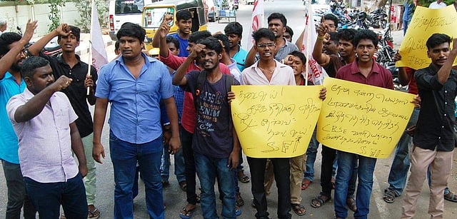 Students' Federation of India activists were today taken into custody for staging a protest outside the regional office of CBSE against the National Entrance-cum-Eligibility Test, police said. They said the activists were also protesting against the bizarre dress code with several candidates complaining of inconvenience when they came for the test on May 7. Police said 18 SFI activists were taken into custody for staging the protest without permission.