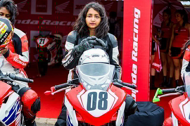 While racing has always been a passion, her wheels took life earlier this year. Deepika credits a lot to her academy, the Honda Ten10 Academy, where one day of practise with expert riders taught her a lot and familiarised her with the technicalities. But while some like the wheels and others the feels, there is something about the freedom that comes with the machine that pumps blood in her feminine veins. To Deepika, the sport is her dose of adrenaline and everything about it is a pill of excitement. "It is a beautiful feeling to put your leather on and sit on your motorcycle seconds before the race," she says.