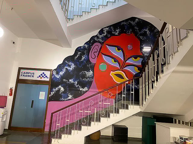 Organised by the Alliance Française network in India, in collaboration with the Embassy of France in India and Institut Français, this festival is travelling across 15 cities in the country, bringing together four artists from India and France to create large-scale murals. The Chennai segment of ‘Wall Art India’ was hosted at Alliance Française Madras from March 1 to 4, where French artist Kashink worked on a mural that reflects this year’s theme of ‘Women, Horizons and New Voices in Urban Art’, in time for International Women’s Day.