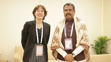 New Delhi, Feb 18 (IANS): Union Education Minister Dharmendra Pradhan on Wednesday met France's Special Envoy for Artificial Intelligence, Anne Bouverot, on the sidelines of the India AI Impact Summit 2026, and discussed expanding collaboration in emerging technologies and research.
