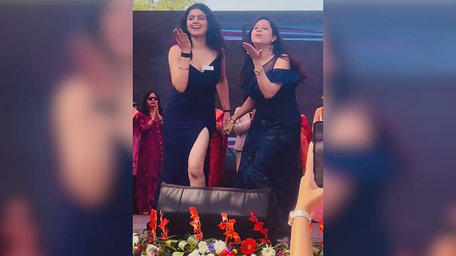 A DU teacher and student, clad in matching black outfits, charm the audience at Gargi College’s fest with an impromptu, synchronised dance  (Img: @dr_anjali_siwal_)