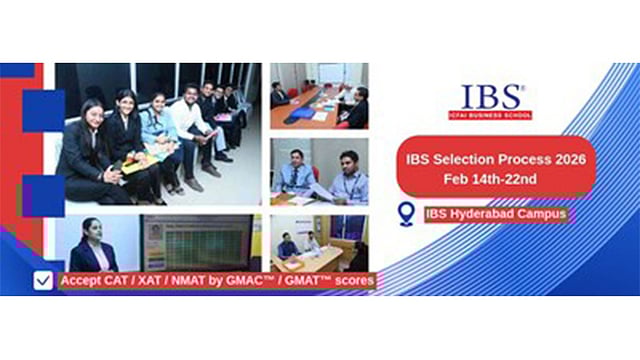 ICFAI Business School (IBS) has detailed its selection process for admission to the two-year MBA and PGPM programmes for the 2026-28 academic cycle, with evaluations planned at its Hyderabad campus between 14 and 22 February.