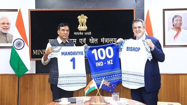 "Had a wonderful meeting with Mr. Chris Bishop, Associate Minister of Sport and Recreation of New Zealand, today. We discussed ways to expand our bilateral sports cooperation. We agreed that sports can be the linchpin for strengthening the bond between our two peoples. (And of course, we also discussed the Men's T20 final.)," Mandaviya wrote in an X post.