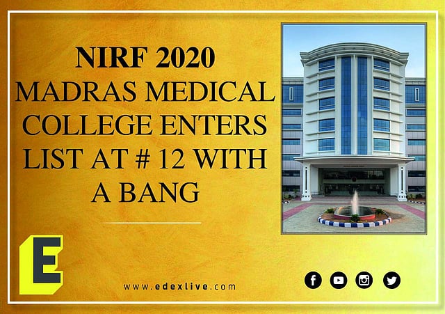 The Madras Medical College and Government General Hospital entered the list of top medical institutions in the country in the National Institutional Ranking Framework (NIRF) Rankings 2020. The 185-year-old college made its place to the 12th position on the list displacing Bengaluru's St John's Medical College (current rank 14). The prestigious college did not find a place in last year's rankings.