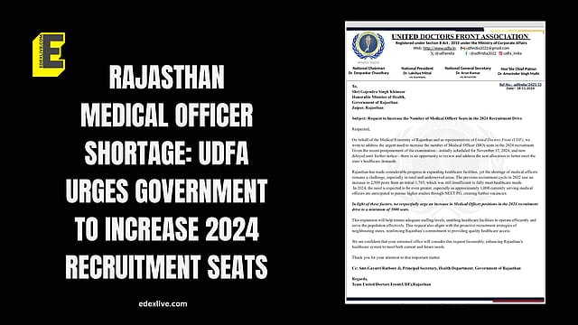 Addressing the dearth of Medical Officers (MO) in Rajasthan, the United Doctors Front Association (UDFA), Rajasthan, addressed a letter to the Minister of Health of the state, Gajendra Singh Khimsar.