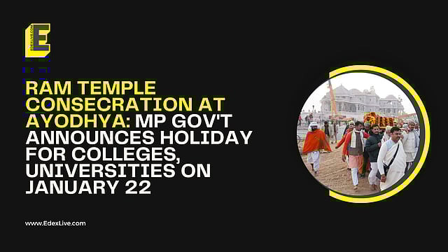On the occasion of the consecration of the Ram Temple at Ayodhya on January 22, the Madhya Pradesh government on Friday, January 19, announced a holiday for all the state government and private universities in the state. An official order issued on Friday read, "The state government hereby declares a full-day holiday in all the government and non-government universities and colleges of the state on January 22, 2024 (Monday) on the occasion of organising the Pran Pratistha program of Lord Shri Ram in Ayodhya."