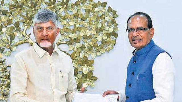 Shivraj Singh Chouhan, who came to Amaravati to unveil the statue of former Prime Minister Atal Bihari Vajpayee, went to the Camp Office of the Chief Minister at Undavalli, and held talks.