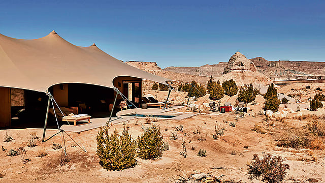 Nestled in the vast, cinematic stillness of Utah’s desert, Camp Sarika by Amangiri is an ultra-luxury proposition built on the rarest currency of all: absolute seclusion. This 10-pavilion enclave redefines exclusivity, where architecture dissolves into landscape and indulgence is measured not in excess, but in access—to silence, sky, and space. Think heated plunge pools that mirror the desert dusk, expansive sun decks that stretch into the horizon, and fire pits that glow against the copper-toned vastness of the Colorado Plateau. Canvas here is deceptive; beneath it lies a fortress of curated luxury, where every detail is engineered for privacy and precision.