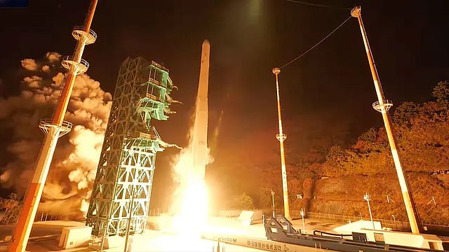 Nuri, powered by five 75-ton-class engines in its first and second stages and a 7-ton-class engine in the third stage, remains South Korea’s first space launch vehicle developed primarily with domestic technology — a critical national asset after decades of relying on foreign launches for its satellites.