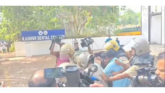 Alleging lapses in the police investigation, activists of the Keralam Students Union (KSU) today organised a protest march to the Anjarakandy Dental College. Visuals from the campus showed KSU activists who staged a sit-in protest being forcibly removed by the police.