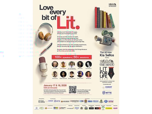 The Hindu Lit For Life is presented by The all-new Kia Seltos. In association with: Christ University, NITTE, Associate Partners: Orchids- The International School, Hindustan Group of Institutions, State Bank of India, IndianOil, Indian Overseas Bank, New India Assurance, Akshayakalpa, United India, ICFAI Group, Chennai Port Authority and Kamarajar Port Limited, Vajiram & Sons, Life Insurance Corporation of India, Mahindra University, Realty Partner: Casagrand, Education Partner: SSVM Institutions, State Partner: Government of Sikkim, Official Timekeeping Partner: Citizen, Regional Partner: DBS Bank India Ltd, Tourism Partner: Bihar Tourism, Bookstore Partner: Crossword and Water Partner: Repute.