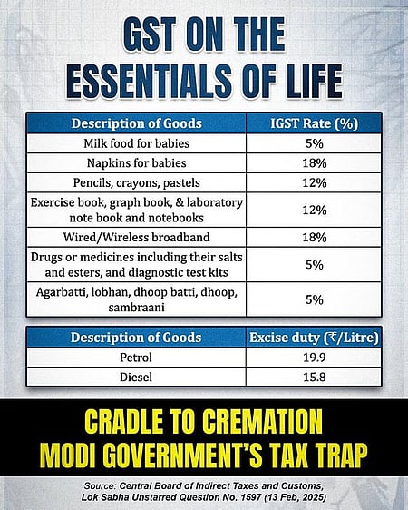"She's correct again, textbooks have no GST. But the graph paper a student uses for his/her math assignment? 12% GST. The laboratory notebook for the science practical? 12% GST. The crayons for the drawing class? 12% GST. On healthcare, she's technically accurate as always; consultation and treatment are GST-free. But the oxygen cylinder that keeps a COVID patient alive? 12% GST. The insulin injection that prevents a diabetic from dying? 5% GST. The anaesthesia for the surgery? 12% GST," he said.