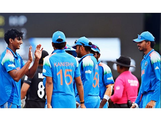 For India, Ambrish had a brilliant day with the ball, picking up a four-wicket haul in just eight overs. He ended up with magical figures of 4/29. Apart from him, Henil Patel (3/23), Khilan Patel (1/26), Mohamed Enaan (1/26), and Kanishk Chouhan (1/30) were among the wicket-takers.