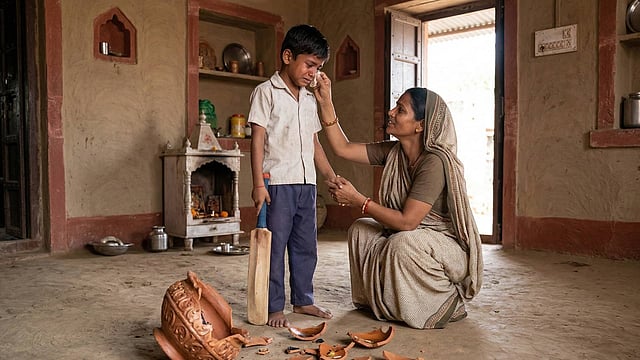 One afternoon, while practicing his cricket swing indoors, Arjun accidentally shattered his mother’s favorite clay lamp—a beautiful heirloom used for evening prayers. He was sad to have broken it but even more terrified of facing his mother.