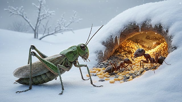 The Grasshopper just shrugged. "Winter is a long way off," he chirped. "Why worry about tomorrow when today is so wonderful?"