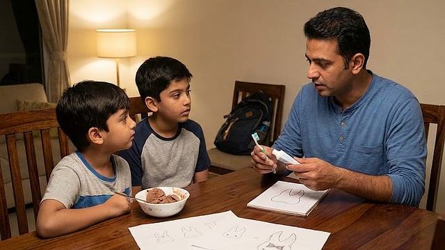 Even before the conversation ended, the two boys were already heading towards the washroom. They had made a firm promise—to never skip brushing their teeth before bedtime again.